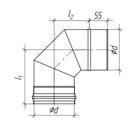 Предназначено для изменения направления дымового канала на 90°. Состоит из 3-х сегментов.