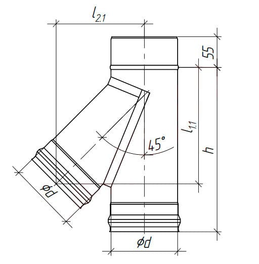 Предназначен для изменения направления дымового канала на угол 45°